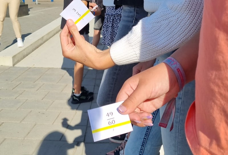 Je hoort gerommel: leerlingen die twijfelen waar ze moeten staan, discussies over welke breuk groter of kleiner is. Maar na een tijdje staat iedereen in de juiste volgorde!